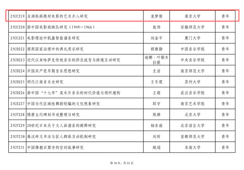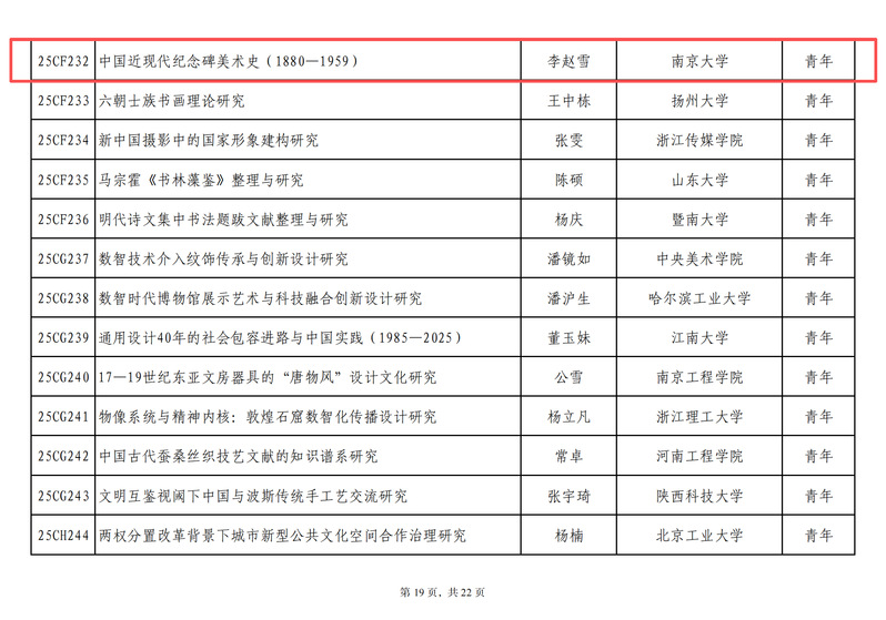 日前,2025年国家社科基金艺术学年度项目立项名单公布,公司袁梦倩“亚洲疾病题材电影的艺术介入研究”、李赵雪“中国近现代纪念碑美术史(1880-1959)”项目获2025年国家社科基金艺术学青年项目立项。