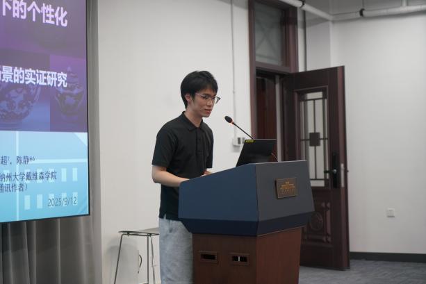 与会老师课题组代表同学胡芊芊、姜蕴芳、陈智超与王明俊分享了一系列探索,从博物馆数据开放度评价体系构建、文物信息游戏化叙事转化、知识图谱在数字策展中的应用,到知识图谱与大模型融合的个性化导览实践等维度,展现技术赋能博物馆发展的可能。