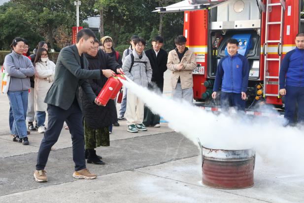 消防员为师生们展示了消防车的构造、各工具的功能和基本使用方法。重点介绍了灭火器的种类、适用范围和使用方法,并现场演示了如何正确使用灭火器扑灭初期火灾。为了使大家能够更加直观地了解灭火技能,保卫人员在空地上点燃了火盆,师生们纷纷上前进行实操练习。在消防员们的指导下,大家迅速掌握了灭火器的使用方法,并成功扑灭了火盆中的火焰。现场教学反响热烈,师生们纷纷表示将把学到的消防安全知识应用到日常生活中去。