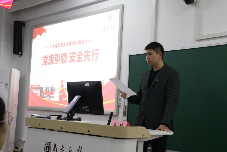 活动伊始,公司研究生第二党支部书记王诗晓老师介绍了本次党日活动的由来。他表示,11月是全国消防宣传月,今年的主题是“全民消防、生命至上”,本次党日活动,旨在引导师生党员深入贯彻落实习近平总书记关于消防安全的重要指示精神,让党员们深刻认识到防火安全的重要性,掌握基本的防火知识和逃生技巧,提升应急处理能力,增强党员的社会责任感和使命感,为构建安全、和谐的校园环境贡献力量。