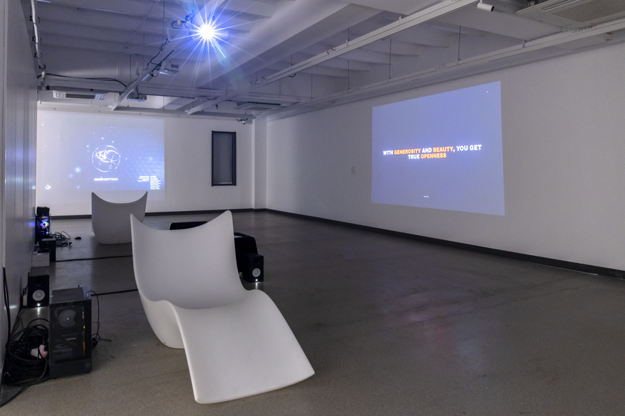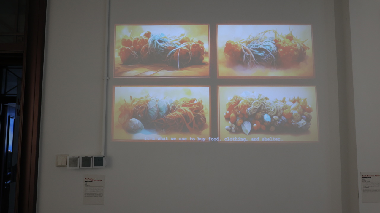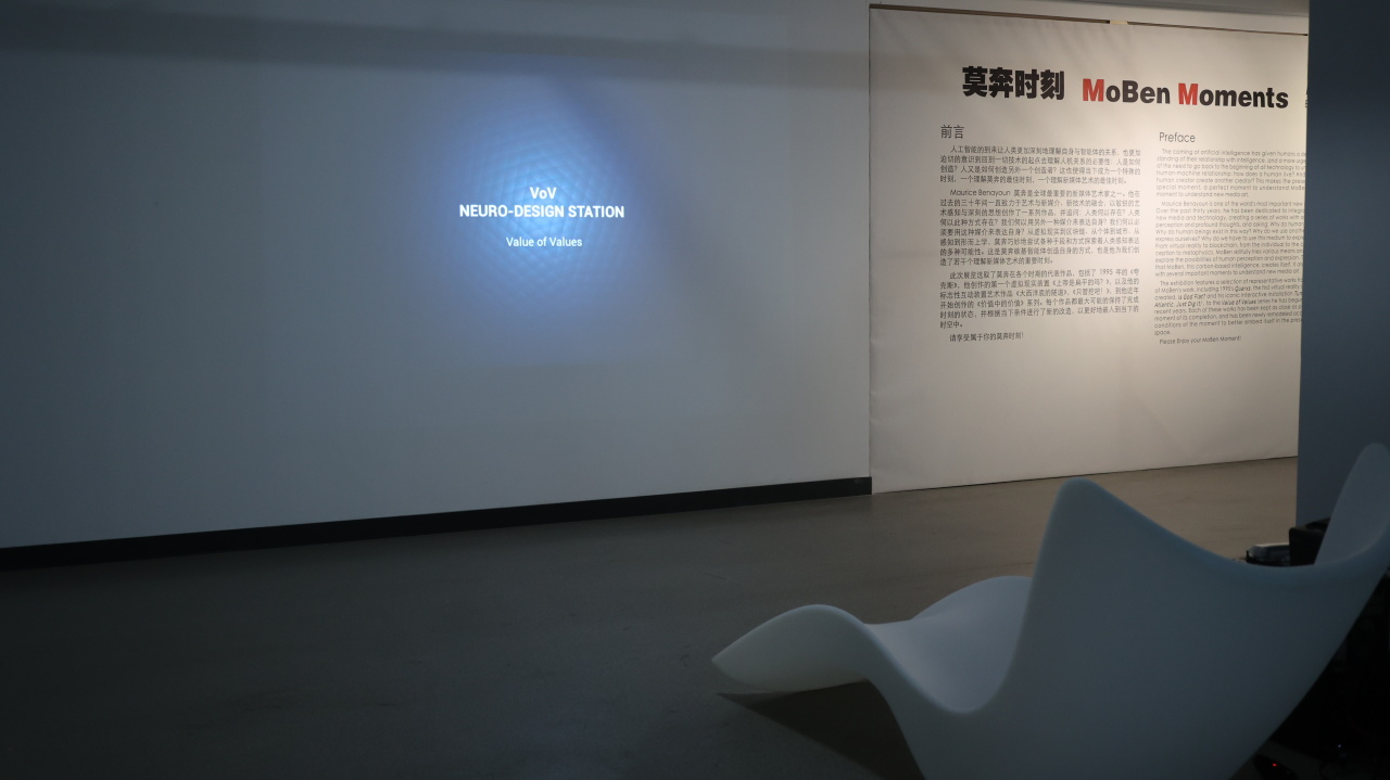 在《朗读者与译者》中,莫奔探讨了AI如何识别和解释人类价值观。“朗读者”提出一个问题:我们能读懂人脑吗?而“译者”则识别了单词并对它们进行了探索,在这之后产生一系列关键字,它们作为原始值的扩展。这件作品通过AI识别单词,探索VoV字符和中国书法之间、符号和表意文字之间的相似之处,是对人工智能在艺术和文化领域应用的一次大胆尝试。
