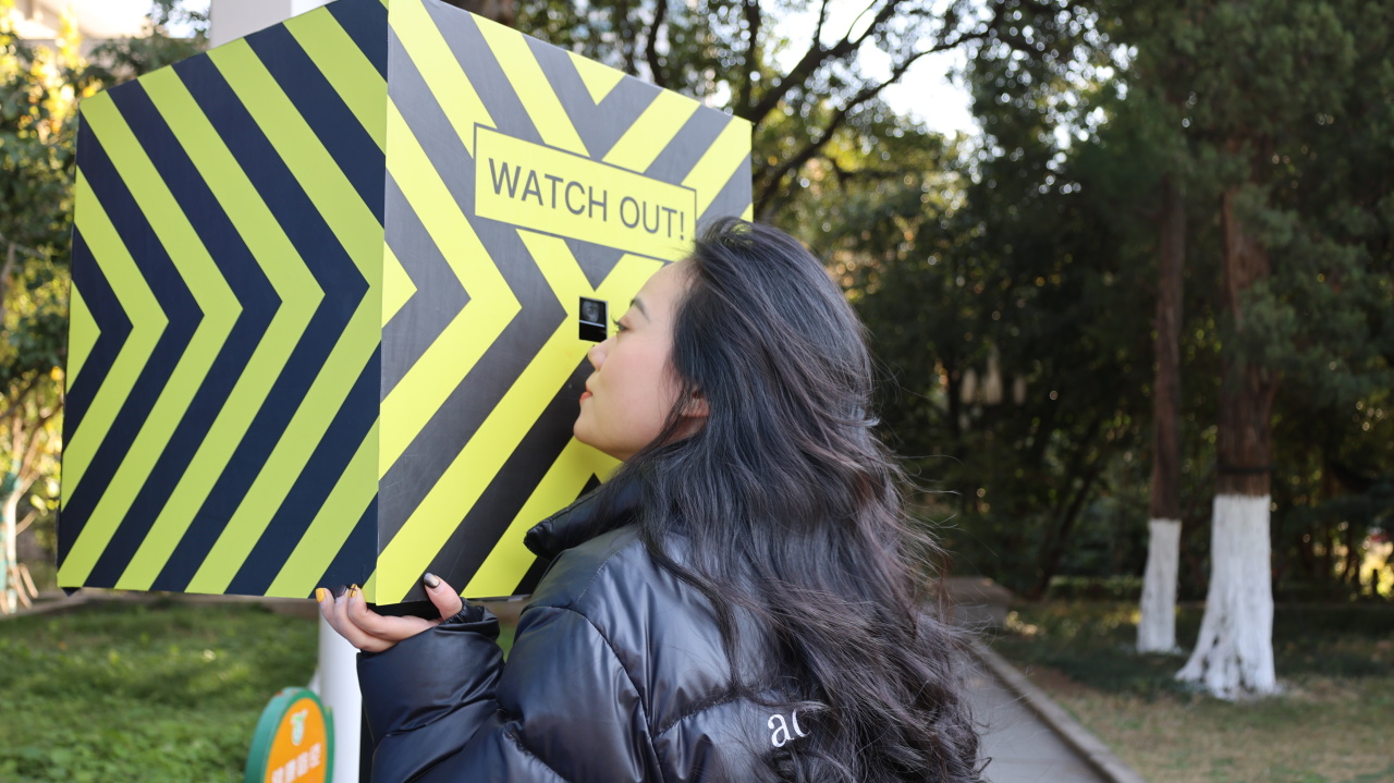 《当心!》是一件集互动性、技术性与批判性于一体的数字艺术作品,通过观众的参与探讨人与世界的复杂关系。作品运用了实时影像与传感器技术,捕捉观众的动作和存在,以直观的视觉语言呈现社会中不可见的紧张关系与权力结构。