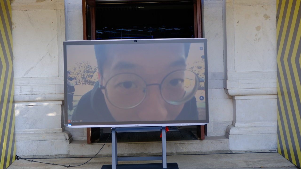 在作品中,观众并非仅仅是旁观者,而是直接的“参与者”甚至“目标”。通过动态生成的影像与声音,作品揭示了一个数据监控与全球化焦虑交织的现实。其深层意图不仅在于引发对当代社会技术依赖的思考,更是在艺术中创造一个充满张力的体验空间。