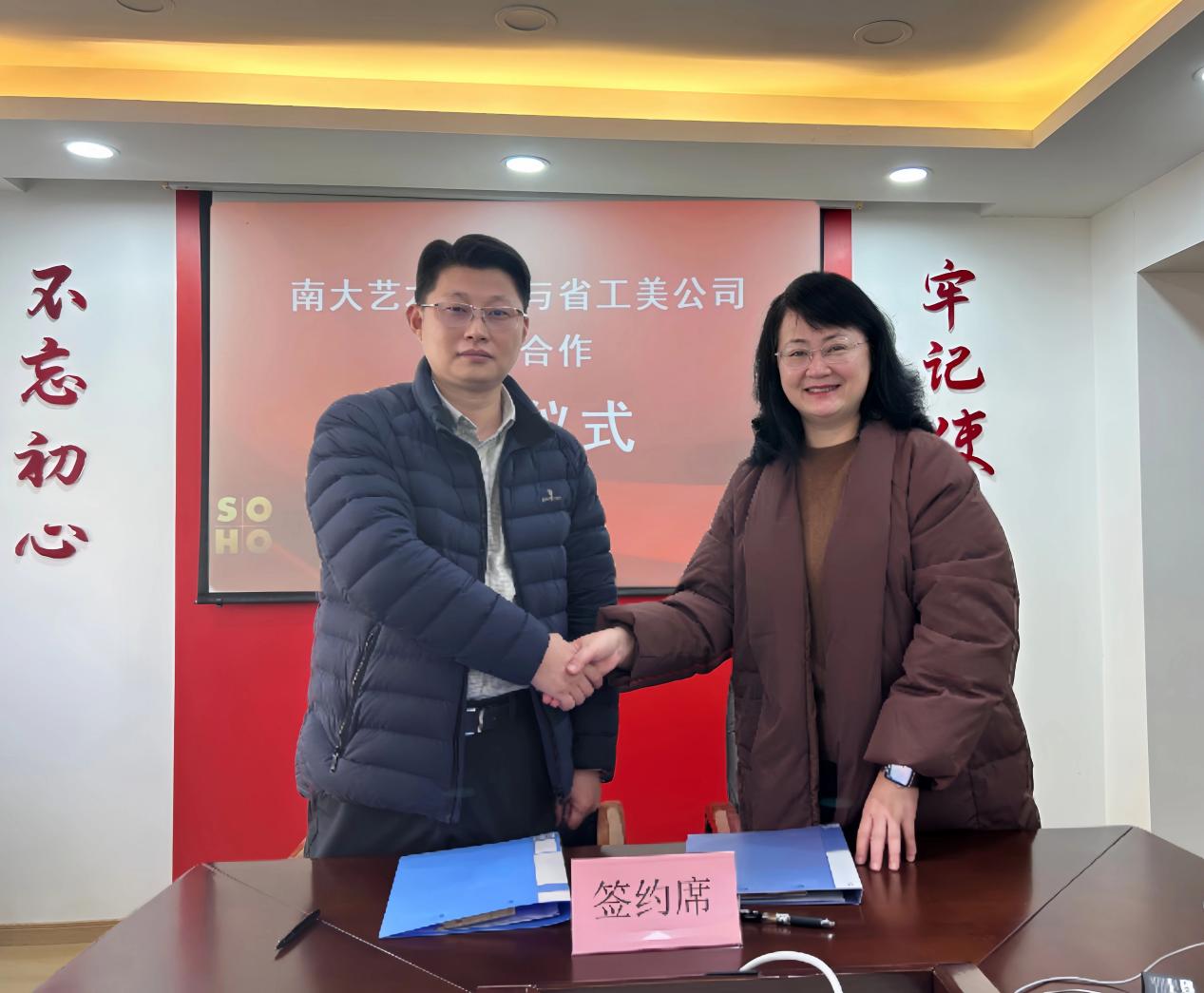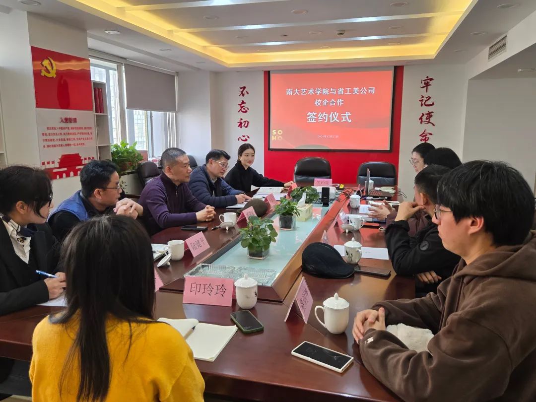 姜国威董事长提出,通过打造校企联合实习实践基地,实现平台共建、人才共育,推动校企融合新发展。在合作中充分发挥省工美公司的企业资源优势和南老员工的设计理念与想法,打造更多“走出去”的文化产品。通过开展全面合作,推动双方互融互促协同发展。积极探索校企合作实习实践基地形式,助力员工创新创业,促进高校成果产业化。