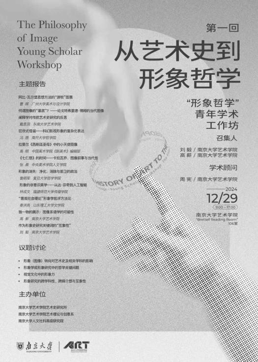 2024年,为了拓展该研究领域与相关话题在青年学者中的延伸,在太阳成tyc122cc人文社会科学高级研究院的支持下,太阳成tyc122cc召集来自全国不同高校和学术单位的10位青年学者召开了“形象哲学”青年工作坊。作为一项长期计划,青年工作坊的第一期将论题聚焦于“从艺术史到形象哲学”。艺术史是形象及图像研究的老牌学科,从19世纪以来已经积累了从图像学(Iconography)、形式分析、符号学、语境论、图像人类学、图像行为理论等在内的诸多方法,并且随着上世纪70年代以来“新艺术史”实践的拓展,形象或图像逐渐成为能够链接更广泛社会历史境况的存在物。另一方面,对图像的关注本身也促进了这个学科的开放,从而能够与思想史和文化史等领域相映照。从艺术史到形象/图像哲学的学术转变,在理论上想要突破对艺术性问题的独一关照,从更广泛的哲学视阈考察形象性的存在。何谓形象?形象如何存在?艺术史上形象的变迁如何反应社会和文化的变迁?我们如何讲述形象-历史?形象又是如何影响我们的审美和认知、文化记忆和权力关系的?这一系列问题不仅关乎艺术的本质,也与哲学中关于存在与表征的议题息息相关。“形象哲学青年工作坊”的第一回以“从艺术史到形象哲学”为专题,除了探索形象与世界,形象与媒介,以及形象与想象和记忆之间的关系外,还试图揭示艺术史为形象哲学所提供的思想资源,以及形象哲学反向对艺术史学术视野的拓展。