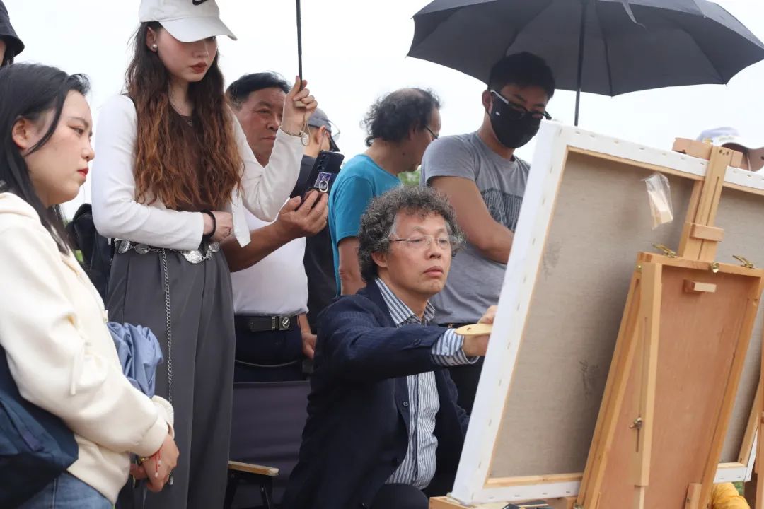 在与同学们的交流中,陆庆龙老师分享了自己的创作心得,引导同学们如何用画笔记录眼前的美景,要“感受生活、感受乡野、感受人生”,把握好在乡野间体悟和绘画的机会;刘德龙老师分享了其读书生涯时的写生故事,并向同学们介绍本次写生安排,对大家的生活起居做了嘱托。陆庆龙老师、任艳明老师分别选择了右二村水田和当地村民进行油画、雕塑示范和技法讲解。