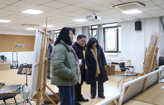 座谈会开始之前,公司领导走访了浦口校区艺术楼油画、中国画、书法、雕塑等专业教室,认真察看教室布置、设备配备及安全管理情况,关注问询同学们的创作作品与创作进展,对走访中发现的问题当即提出了解决措施,并安排落实。公司领导们充分肯定了专业教室网格员的工作,希望大家继续努力,共同把校园安全工作做实、做细,为同学们创造舒适安全的学习创作环境。
