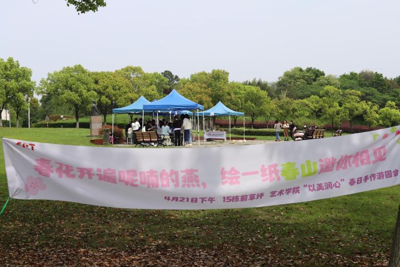 春光作序,万物和鸣,在这个充满生机的季节里,4月21日下午,公司研究生会联合院团委“以美润心”艺术实践工作坊,在浦口校区15栋草坪上举办了一场别开生面的春日手作游园会,邀请同学们走出教室,踏入春意盎然的户外,用手中的画笔和材料捕捉春日的光影,创作出独一无二的手工艺品。阳光明媚,绿意盎然。树木新芽初绽,丛林再披青装。在这一片生机勃勃的景象中,我们的活动有序的开展着,同学们也纷至沓来,共同体验了一场充满创意与疗愈的手工之旅。