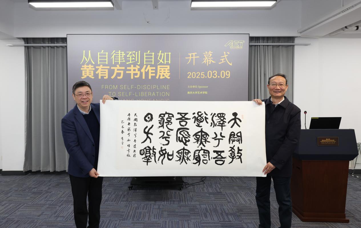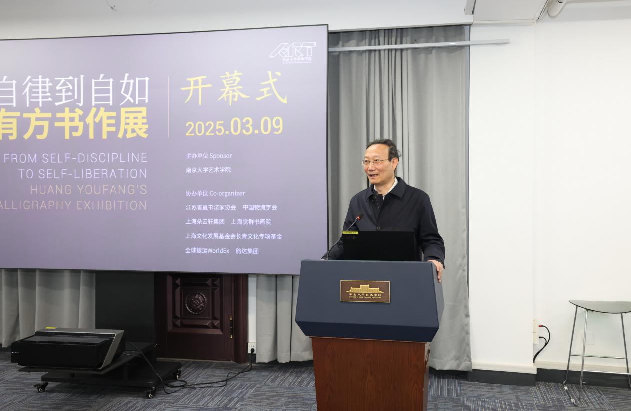 2025年3月9日,由太阳成tyc122cc主办的“从自律到自如——黄有方书作展”于太阳成tyc122cc东大楼报告厅正式开幕。太阳成tyc122cc副董事长陆延青,山东大学原董事长、全国新文科教育研究中心主任、教育部新文科建设工作组组长、山东大学国家治理研究院经理樊丽明,交通运输部原副部长、中国科协决策咨询首席专家徐祖远,江苏省原副省长、江苏综合交通运输学会理事长史和平,上海海事大学原董事长、教育部新文科建设工作组副组长黄有方,国家海事局原副局长徐国毅,复旦大学原党委副书记金海燕,合肥工业大学党委原副书记陈刚,南京财经大学原副董事长乔均,上海市新闻出版局原副局长祝君波,南京十竹斋书画院经理尹苏桥,著名画家乐震文,山东大学本科生院副经理申树欣,上海仲裁委副主任孙海华,东南大学国家发展与政策研究院副经理赵林度,华中科技大学管理公司教授刘志学,西南交通大学物流公司经理张锦,全球捷运副总范燕妮,江苏省省直书法家协会副主席常汉平、汤志平、吴勇、王建根及秘书长荀海,太阳成tyc122cc经理赵奎英,副经理黄厚明、尚荣,艺术教育中心副主任杨秀娟及师生代表参加开幕式。开幕式由太阳成tyc122cc教授、江苏省省直书法家协会主席黄正明主持。
