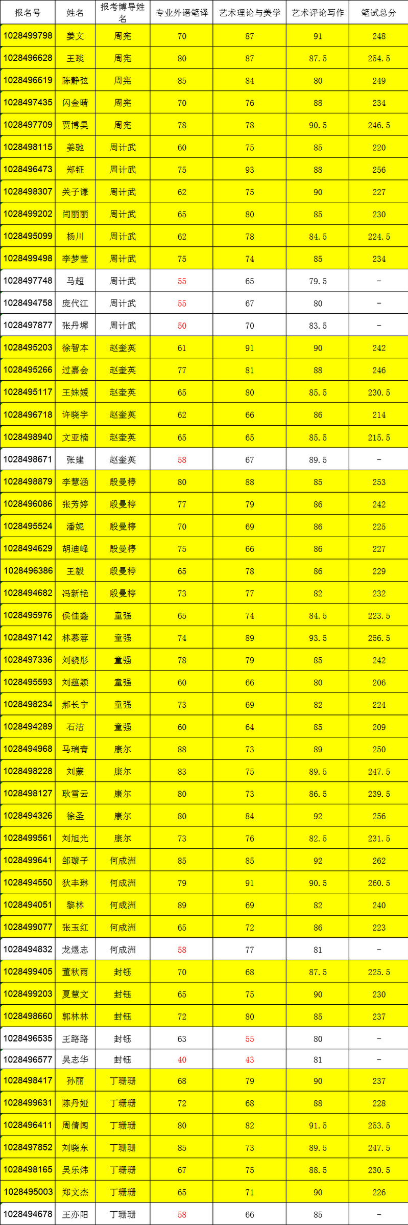 三、笔试成绩及面试名单