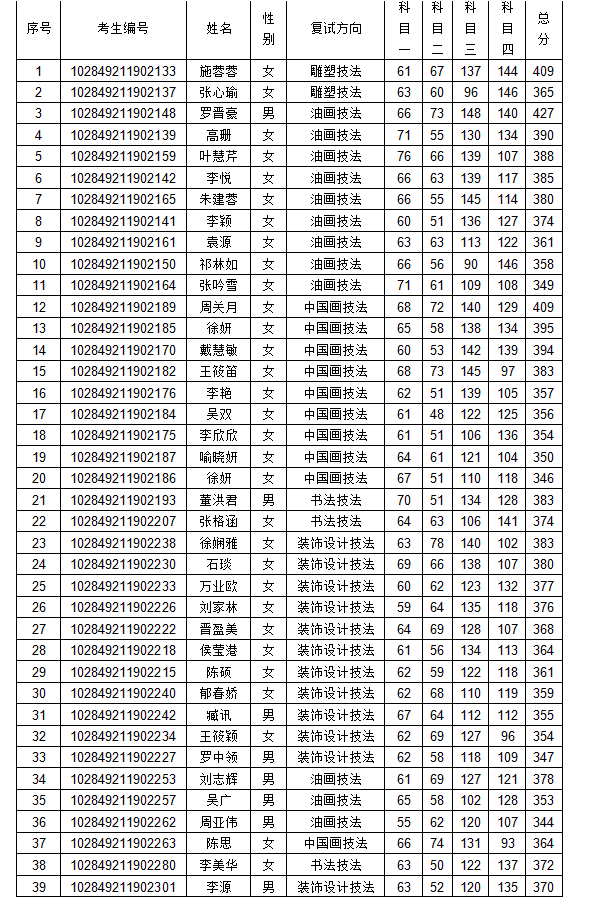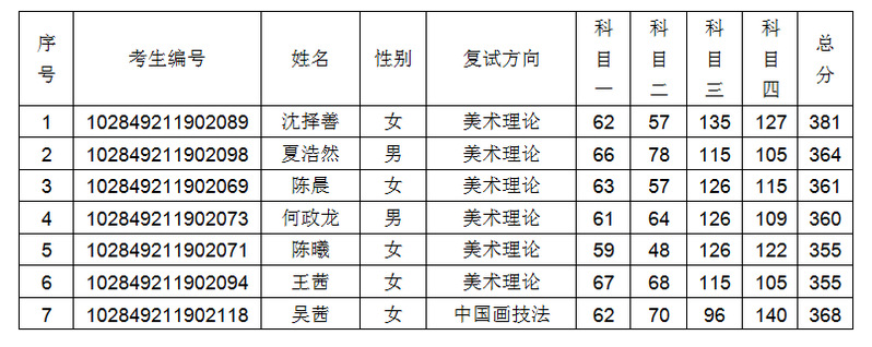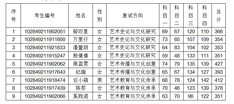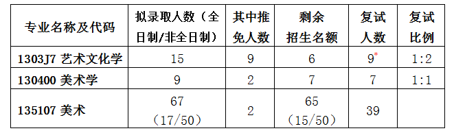 备注:艺术文化学按1:2进入复试,其中,01方向拟招收2人,复试人数4人;02方向拟招收1人,复试人数2人;03方向拟招收3人,复试人数3人(仅3人上线)。