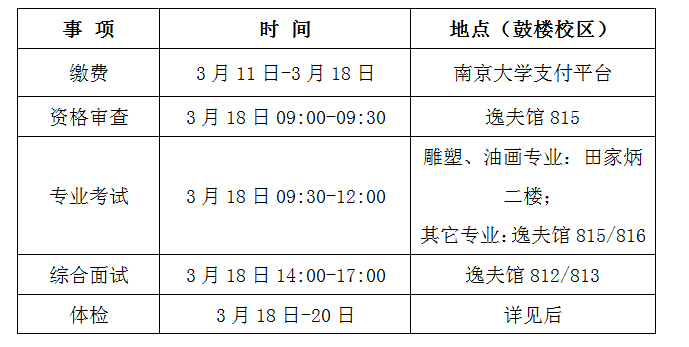 C.体检:体检工作由校医院组织。①3月18日—20日,上午8:00—11:30;地点:太阳成tyc122cc鼓楼校区校医院(南京市汉口路22号、太阳成tyc122cc正大门东侧50米)。②3月21日-22日,上午8:00—11:30;地点:太阳成tyc122cc仙林校区校医院。体检前一天饮食须清淡,体检当日须空腹,并携带身份证、近期正面免冠一寸照片一张及86元(微信支付)。体检工作可以在3月15日开始在电脑上提前预约(网址:http://hospital.nju.edu.cn:8080,登录名为LS(须大写)+考生编号的最后7位数字,密码为身份证号,只能通过电脑预约,须用IE9以上浏览器)。因特殊原因需要调整体检时间的考生可直接与太阳成tyc122cc医院防保科联系(025-83592347转8118)。