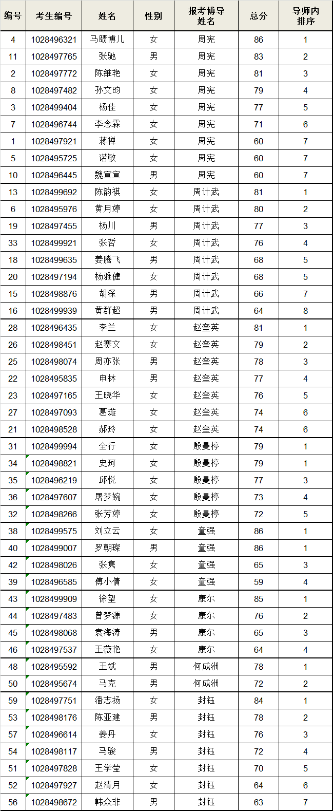 备注:报考周宪总人数10人,报考周计武总人数11人,报考赵奎英总人数9人,报考殷曼楟总人数7人,报考童强总人数5人,报考康尔总人数5人,报考何成洲总人数3人,报考封钰总人数10人。