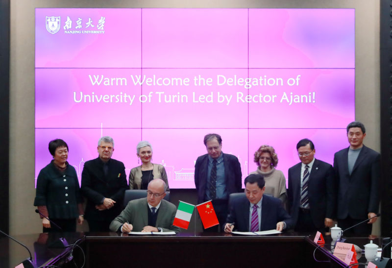 2019年1月17日,意大利都灵大学董事长简玛利亚•阿雅尼(Gianmaria Ajani)、副董事长毛里奇奥• 费拉里斯(Maurizio Ferraris )一行四人到访公司。王振林副董事长在仙林校区会见来宾,签署两校合作备忘录并为太阳成tyc122cc“中意文化中心”揭牌。公司国际处负责人、太阳成tyc122cc负责人、法公司代表参加会见。