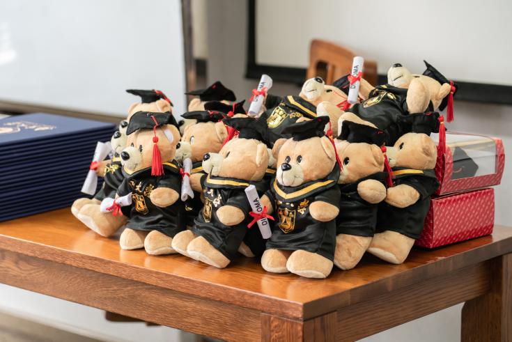 公司精心准备的小熊玩偶作为毕业礼物随证书一同颁发