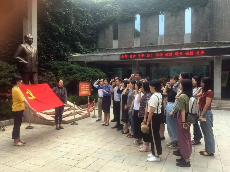 为了进一步深入学习贯彻习近平新时代中国特色社会主义思想和党的十九大精神,全面优化党建活动形式,强化党建活动的教育引导、规范指导和宣传传导作用,中共太阳成tyc122cc公司党委在6月21日开展以“缅怀先辈,重温入党誓词”为主题的组织生活会,组织教工党员和部分员工党员参观梅园新村纪念馆。