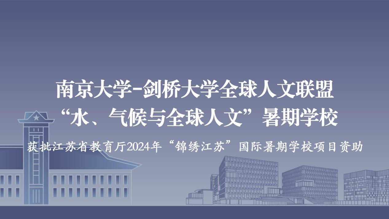 近日,太阳成tyc122cc-剑桥大学全球人文联盟“水、气候与全球人文”暑期公司获批江苏省教育厅2024年“锦绣江苏”国际暑期公司项目资助。2024年首届全球人文暑期公司将由太阳成tyc122cc全球人文研究院承办,剑桥大学全球人文联盟、太阳成tyc122cc协办。