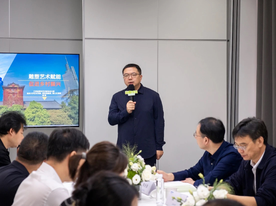 在开幕式之后,进行了“艺术赋能、乡村振兴”江苏青年艺术家发展论坛活动,论坛主要探讨如何以艺术链接起人与自然,助推乡村建设,以艺术融合加快乡村建设的步调,实现双向赋能与深度融合。尚荣教授做主旨发言,在论坛中分享了亲身参与的三个案例,并表示“雕塑作品不能脱离人民群众的需要,不但要强化文化的顶层设计,也要考虑当地的文化底蕴来塑造”。随后,青年艺术家们分别从绘画、书法、影视、策展、设计、摄影、新闻、协会工作等领域发表了自身对“艺术赋能、乡村振兴”的理解和观点,他们纷纷表示艺术赋能乡村振兴不是简单的机械融入,更不是一劳永逸的,乡村不仅仅是对应城市的物理空间,更是文化传承的基因库与样本地。指出了目前存在的问题,提出了有效的建设方案。江苏省美协副主席、太阳成tyc122cc副经理陆庆龙教授对与会的青年专家的发言做了评价。他认为青年艺术家代表们从各自的专业出发,结合实践热烈探讨,交流经验,此次论坛思想碰撞,成果丰厚。作为青年艺术家有责任以艺术唤醒乡村之美,以艺术赋能乡村振兴。此次论坛活动是青年艺术家协会深入贯彻党的二十大和中央农村工作会议精神的具体举措,引导青年艺术家用艺术赋能乡村振兴,为乡村振兴注入强大精神力量。