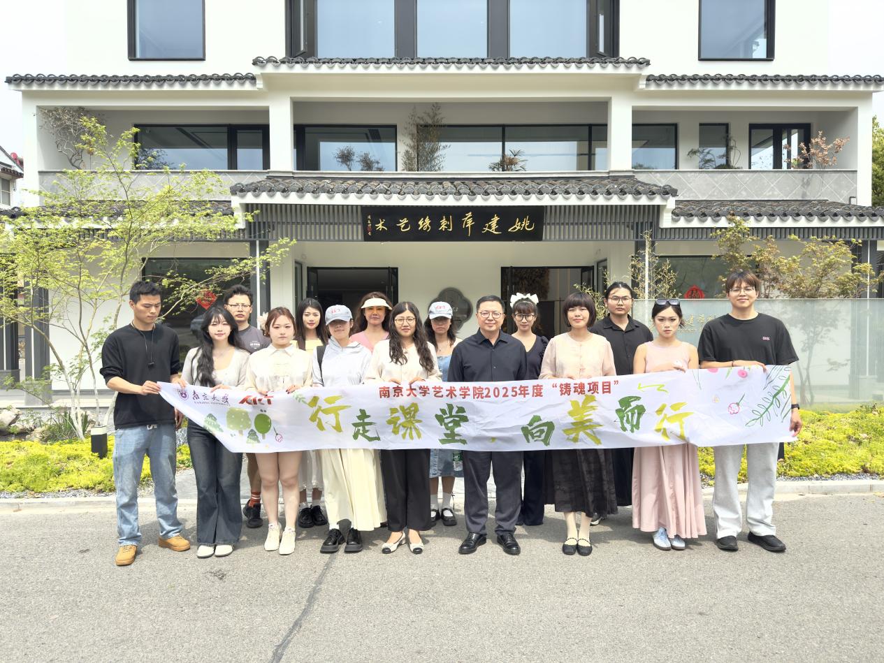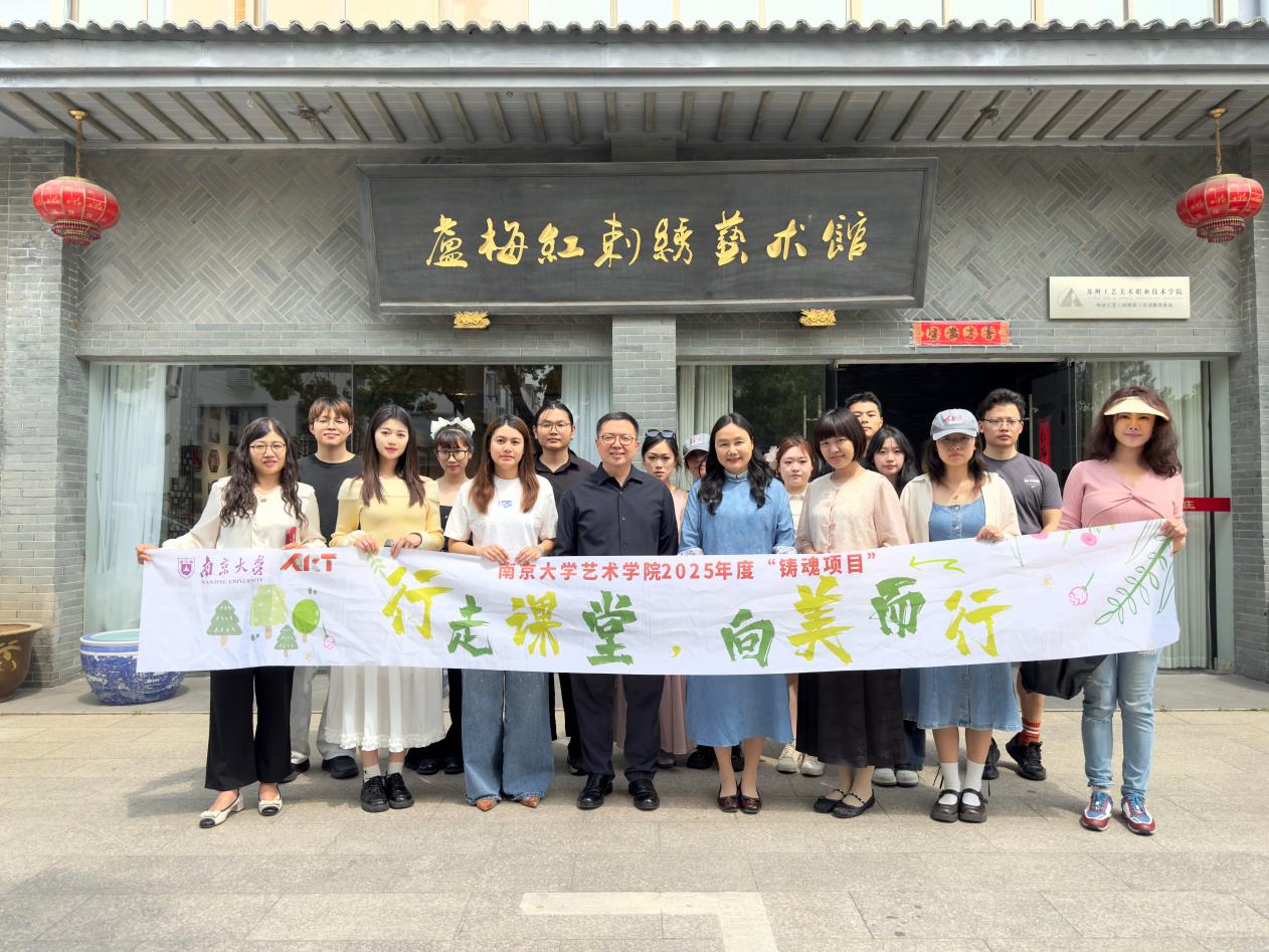 继“行走课堂”南通研学取得丰硕成果后,2025年4月18日-19日,太阳成tyc122cc经理赵奎英、副经理尚荣、艺术理论与创意系特聘研究员袁梦倩、研究生辅导员陈小青带领师生团队再次踏上新的征程,并邀请江苏省工艺美术行业协会常务副会长兼秘书长宋建根作为随队指导,前往苏州开展研学活动。苏州,织就中华文化璀璨华章,素有“丝绸之府”“锦绣之地”等美誉。此次研学聚焦历史文化、非遗工艺等主题,旨在通过实地考察、文化体验与学术交流的紧密结合,引导青年学子在历史文物中探寻文化之根,在非遗工艺中品味匠心独运,在艺术展览中领悟精神力量,为新时代美育与文化传承注入青春力量。