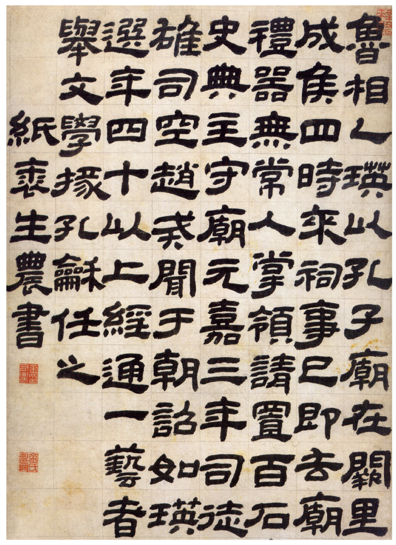 东汉碑刻隶书,已是成熟汉隶。清代中期,隶书重兴,有成就的隶书家和考据学者(如金农、丁敬、桂馥、钱大昕、黄易、巴慰祖),无不以这些传世的东汉隶书