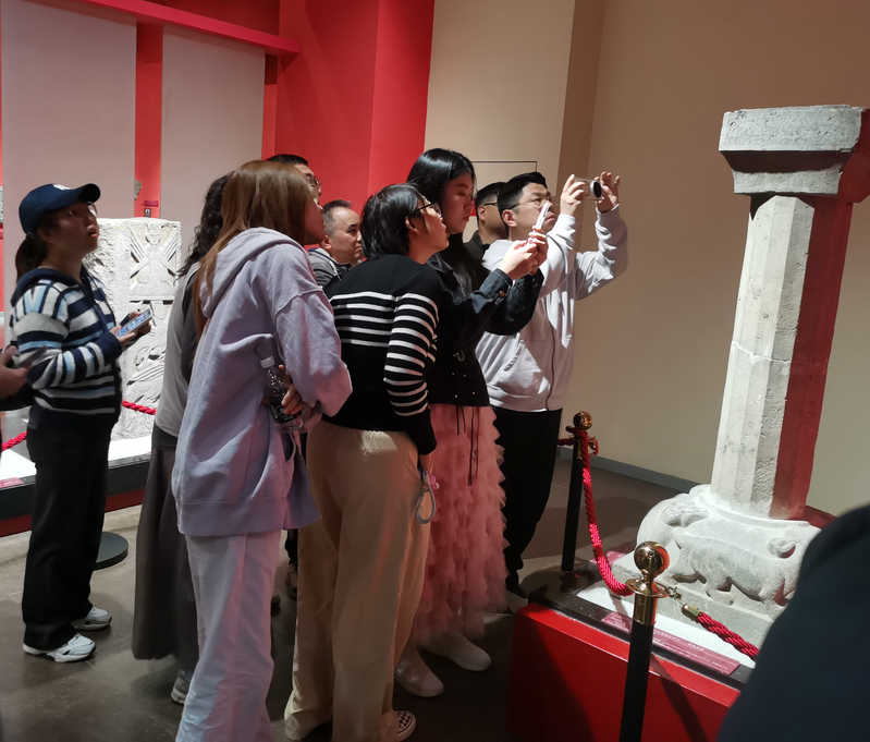 图(1)师生一行参观临沂市博物馆汉画像石雕专题陈展
