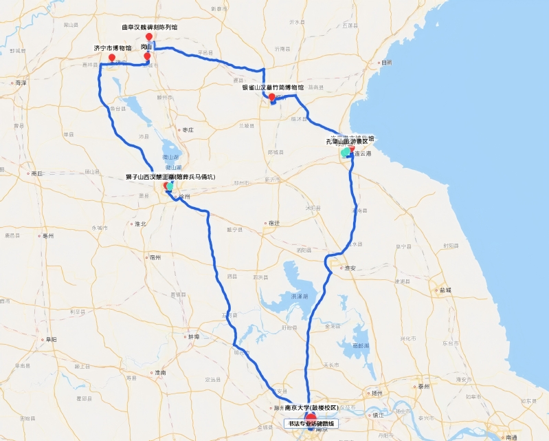 外出访学考察是公司书法专业教学的常规活动之一。本次访学考察,由一位不愿透露姓名的热心企业家全程赞助;主体成员由在校三届书法专业硕士生和部分在宁毕业生组成,邀请公司8位中青年教师加盟,随队配备队医。师生一行35人,五天之内,辗转连云港、临沂、曲阜、济宁、徐州各地,行程1300公里。由于行前做了充分准备,方小壮老师为此次考察进行总动员,并针对考察对象作了“笔法起源与隶书笔法”的专题讲座,详细区分汉篆、古隶、汉隶、八分书之别;同时,又有各地毕业生与家长、书协与文旅部门领导的精心导航和热情接待,行程紧凑而丰富,圆满完成了本次预定的访学考察任务。