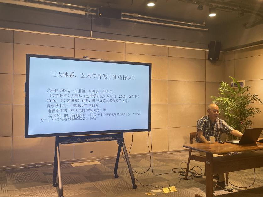 接下来,李教授又围绕着艺术学三大体系建立与当代艺术体系的关系展开了探讨。首先是艺术学的学术体系,即主要是有关艺术的理论的体系,李教授认为,学术体系是最基础最核心的部分,假如我们的艺术学学术体系是过于陈旧的、照搬国外的,则必然会影响到艺术学研究的前沿性和价值维度;其次是艺术学的学科体系,学科体系包括按照一定学理的逻辑关系构造的学科系统和体制化的学科体系两种内涵,李教授指出,无论哪种意义上的学科体系,都离不开对艺术体系的把握,亦即要以艺术体系为前提和基础;再次是艺术学的话语体系,话语体系即上述学术体系、学科体系在语言层面的表达所构成的话语的体系、言说的体系,简言之,关于使用何种术语与命题的体系。李教授认为,在三大体系中,学术体系是最为重要的,具有最高的稳定性,同时指出对于这一问题学界有着多种不同观点,仍有待继续探讨。最后,李教授又对当代艺术体系问题进行了深入的阐发,并探讨了三大体系建立与当代艺术体系的重要关系,并介绍了他与团队对于这一问题的研究成果与创新之处。
