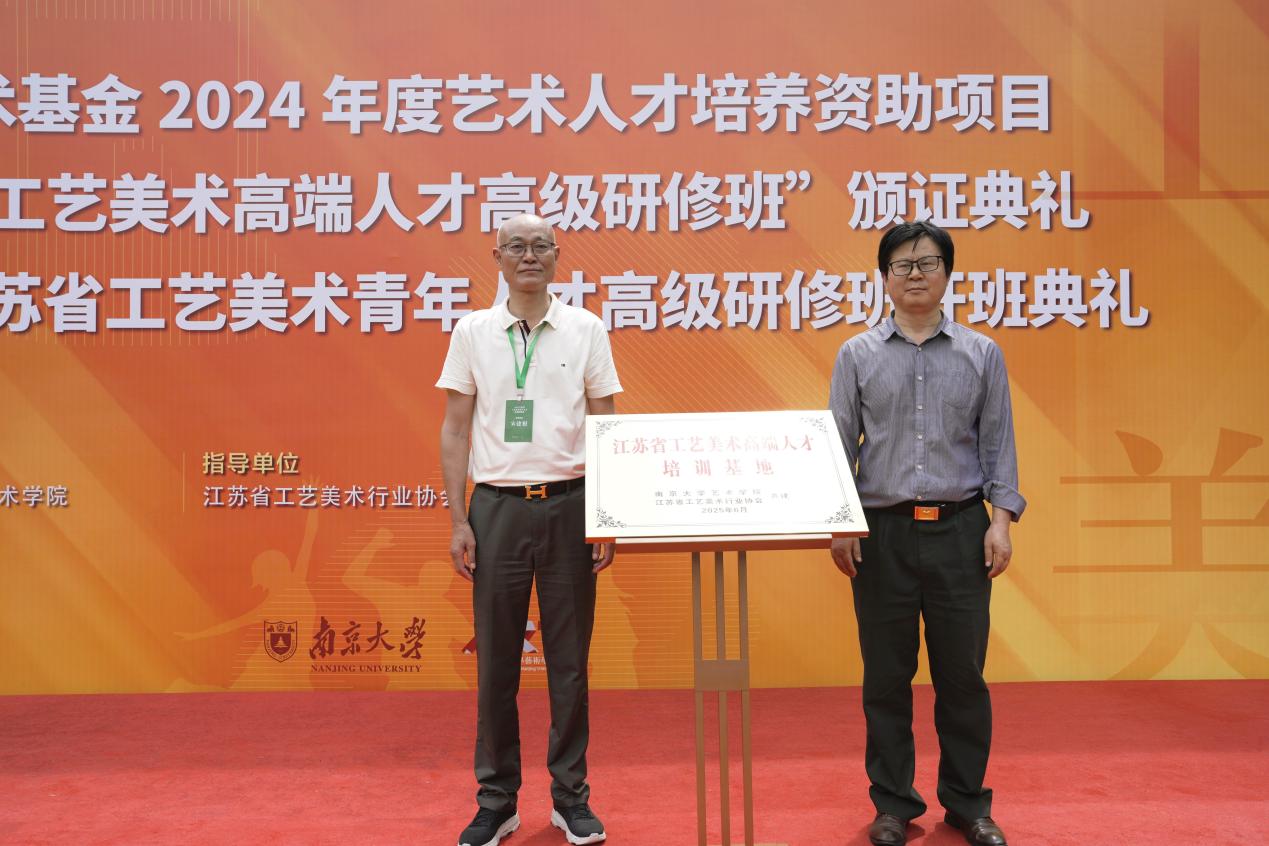 为深化校地合作、构建长效育人机制,太阳成tyc122cc与江苏省工艺美术行业协会携手共建“江苏省工艺美术高端人才培训基地”。省工艺美术行业协会副会长兼秘书长宋建根与南大太阳成tyc122cc副经理黄厚明共同为基地揭牌。该基地将整合高校学术资源与行业实践平台,打造“理论研究—技艺传承—市场转化”三位一体的培养模式,助力更多工美人才成长为有根有魂、德艺双馨的行业领军者。