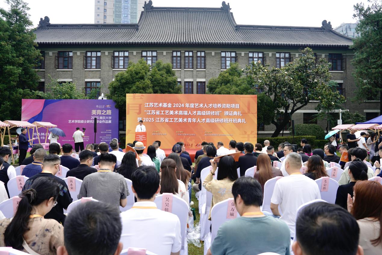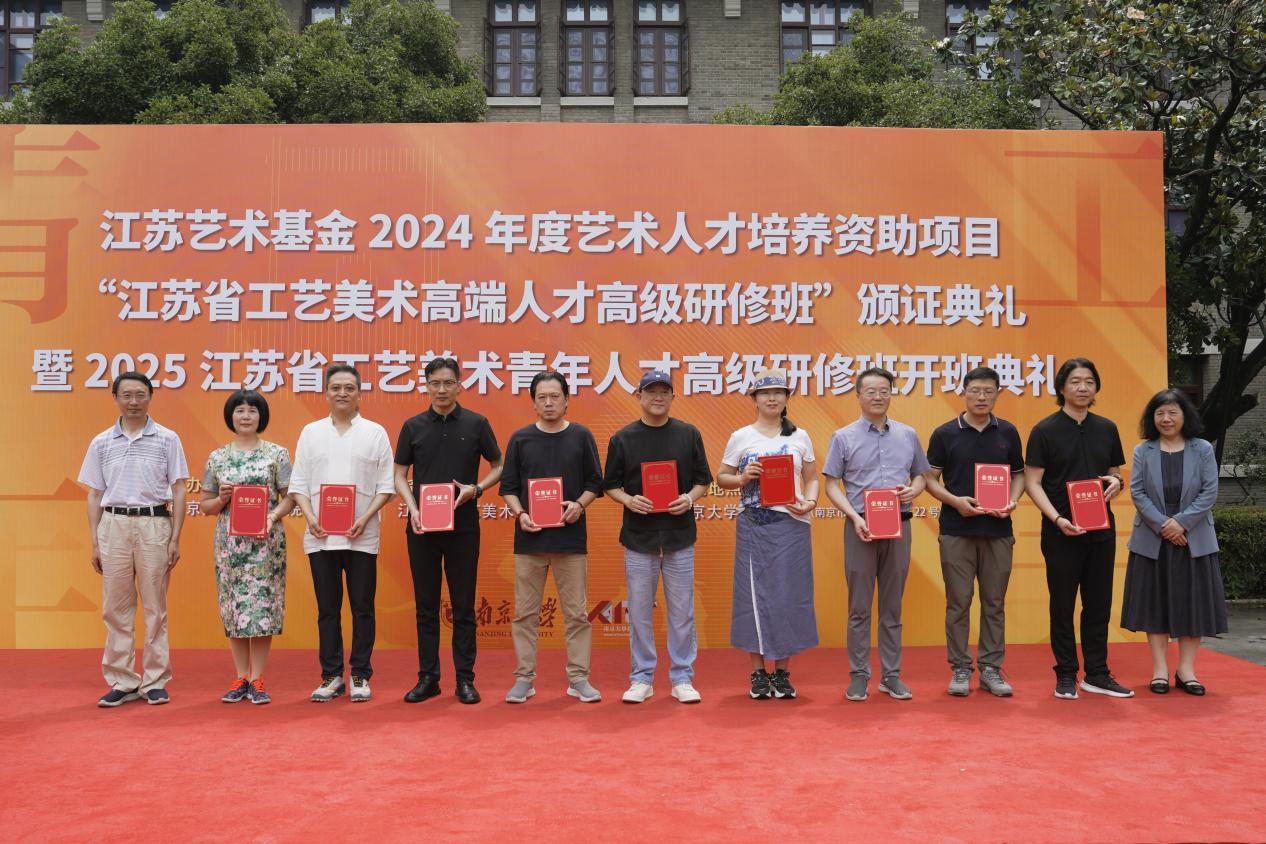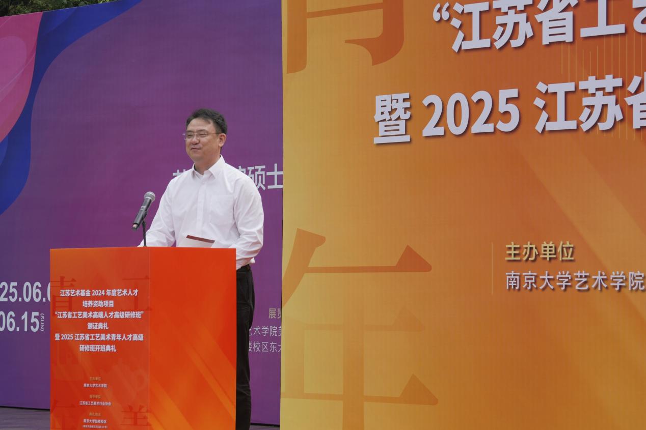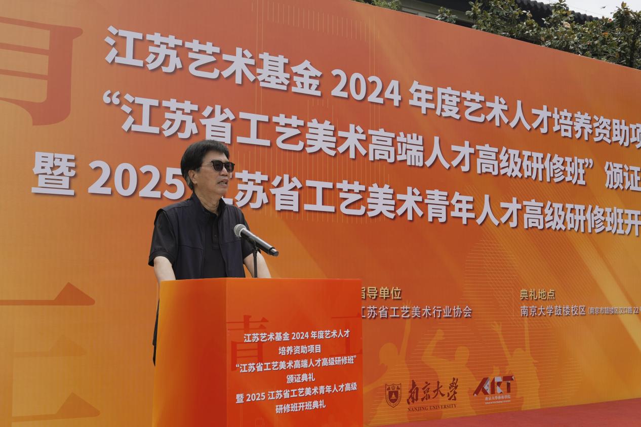 2025年6月8日上午,江苏艺术基金2024年度艺术人才培养资助项目“江苏省工艺美术高端人才高级研修班”颁证典礼暨2025江苏省工艺美术青年人才高级研修班开班典礼在太阳成tyc122cc东大楼举行。太阳成tyc122cc党委常委、副董事长索文斌,江苏省文联主席章剑华,江苏省文化和旅游厅一级巡视员朱斌,江苏省工艺美术行业协会会长于广云,太阳成tyc122cc经理赵奎英出席活动并致辞。