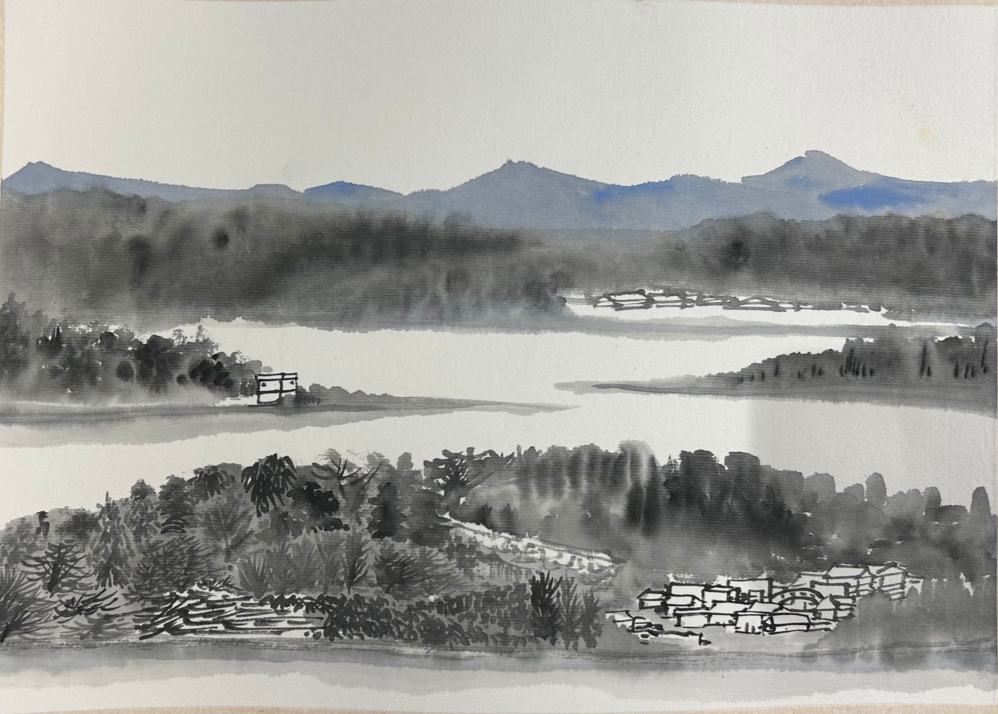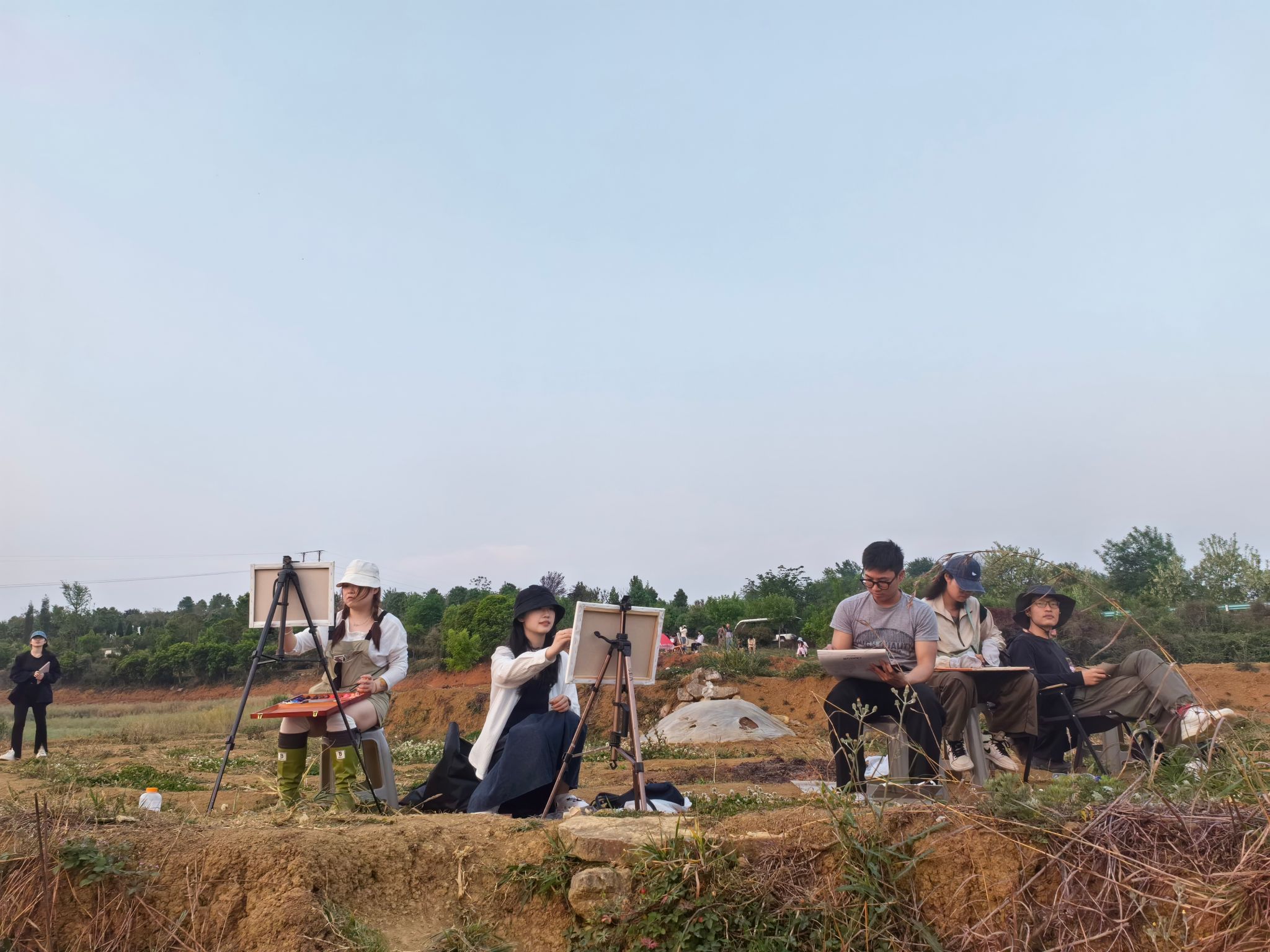 In mid-April, students and faculty from Nanjing University School of Arts traveled to You'er Village in Qingzhen City, Guiyang, Guizhou Province, for a week-long field study. The students are from the Oil Painting, Chinese Painting, and Sculpture programs. You'er Village boasts its special geographical features and picturesque landscapes. It has been designated as one of Guizhou's fourth batch of Key Tourist Villages, and serves as a field study base for the Nanjing University School of Arts.