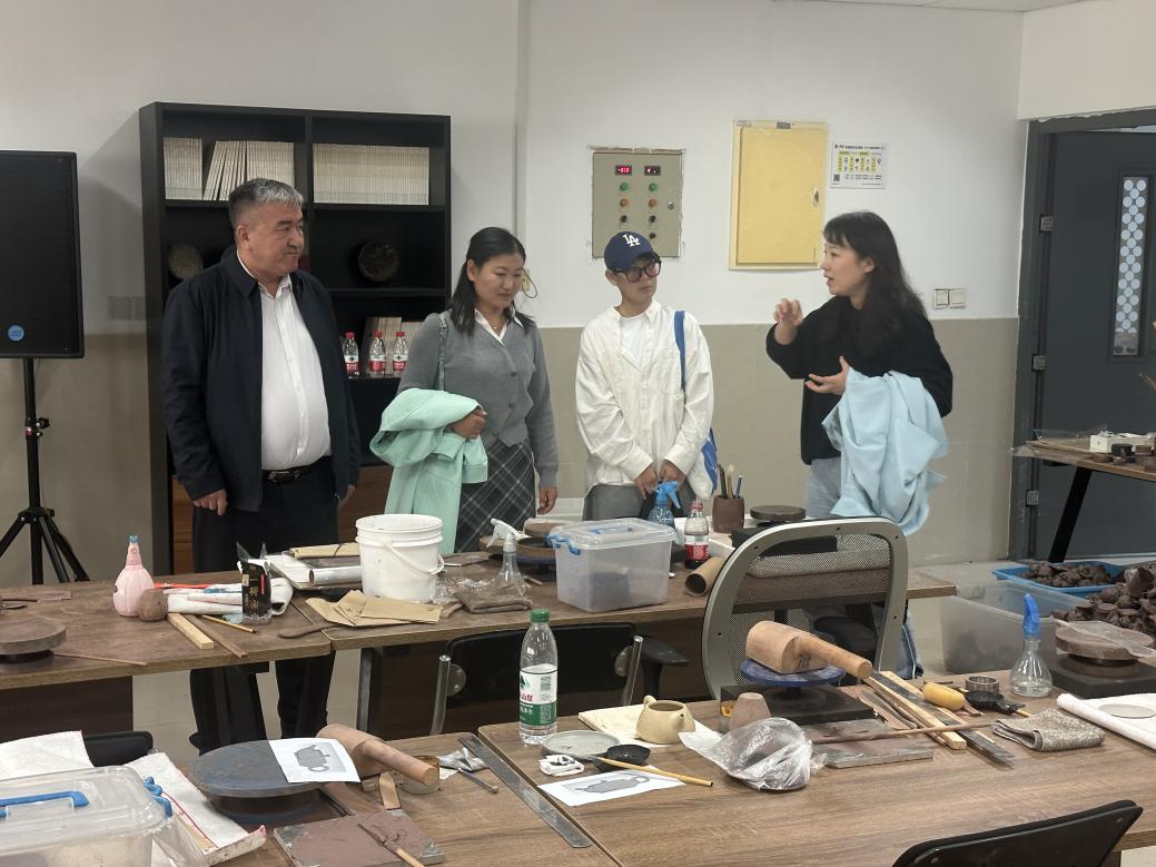 In the afternoon of November 11, 2024, Muhayat Jahai, Dean of the School of Fine Arts and Design at Ili Normal University, visited the School of Arts at Nanjing University. During the research visit, Dean Muhayat Jahai also toured the Sculpture Art Research Institute of Nanjing University, the Wu Weishan Sculpture Garden, the Purple Clay Cultural Heritage Base and Purple Clay Laboratory of the Ministry of Education at Nanjing University, and the Nanjing Meiji Art Museum, which is a Jiangsu Provincial Intangible Cultural Heritage Creative Base.