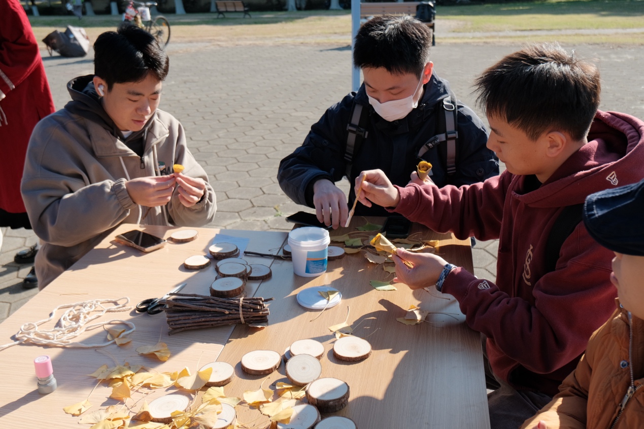 Students enjoyed a tranquil and leisurely afternoon on the lawn of Building 15 in Pukou, amidst autumnal elements like acorns, apricot leaves, and withered branches. They embarked on an artistic and creative journey through hands-on activities.