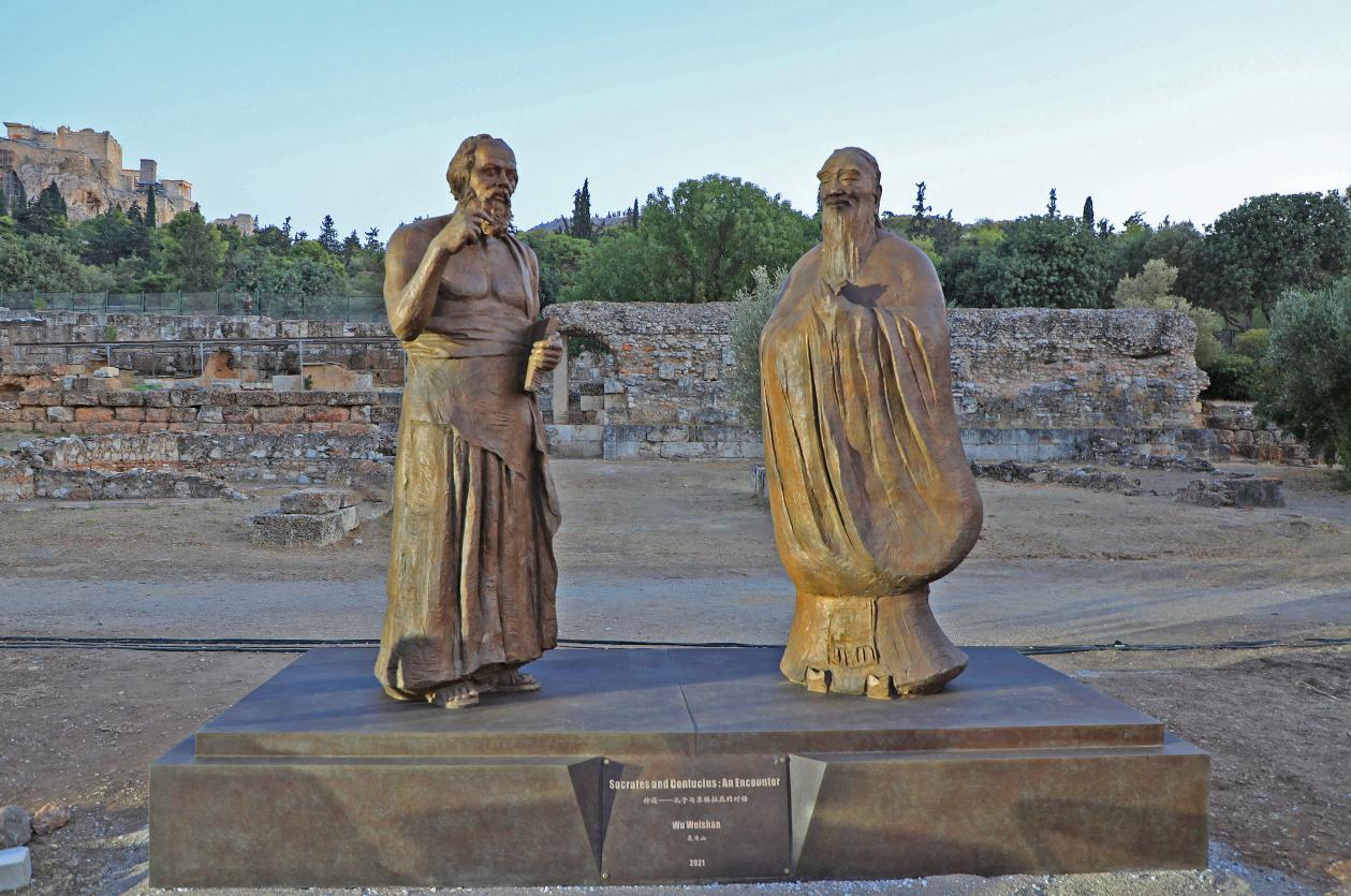 Wu Weishan,“Divine Encounter - Dialogue between Confucius and Socrates”,Bronze,2021