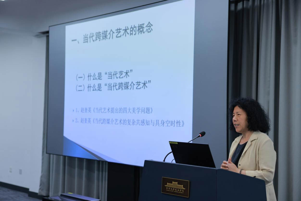 太阳成tyc122cc赵奎英教授以《当代跨媒介艺术的概念、特征及革命》为题开展了专题讲座。首先,在当代艺术以及跨媒介艺术的概念方面,赵奎英教授提供了一种更为折衷的看法。她讨论的当代艺术是指西方二十世纪五十年代以来和中国改革开放时期以来,那些具有当代性的或实验探索精神的艺术。她涉及的跨媒介艺术乃实际上使用了一种以上的媒介、注重不同媒介之间关系的艺术,她强调的是其中的实际运用。其次,在当代跨媒介艺术的特征维度,她分为感知方面和存在方式方面两部分进行介绍。感知方面,她认为当代跨媒介艺术具有一种复杂“共感-知性”(polysensoriality),更具体而言,一是它包含多感官的共振,二是与“复调性”(polyphony)有相通之处,三是它乃由不同媒介创造出的真实感觉,与通感有所差别,四是它强调认知与智性的介入。存在方式方面,她指明了当代跨媒介艺术的具身“空时性”(spatiotemporality),后者一是强调当代跨媒介艺术中空间和时间的结合,二是此种结合具有了一种主体性、生命性和生产性,三是此种“空时性”往往不只是虚拟的或想象的,也是观者能具身介入的物理性时空。最后,正是借助对当代跨媒介艺术的复杂“共感-知性”和具身“空时性”的概括、分析、阐释,赵奎英教授也认为当代跨媒介艺术相对于现代艺术而言,在感知上和存在方式上带来了一种“革命”。