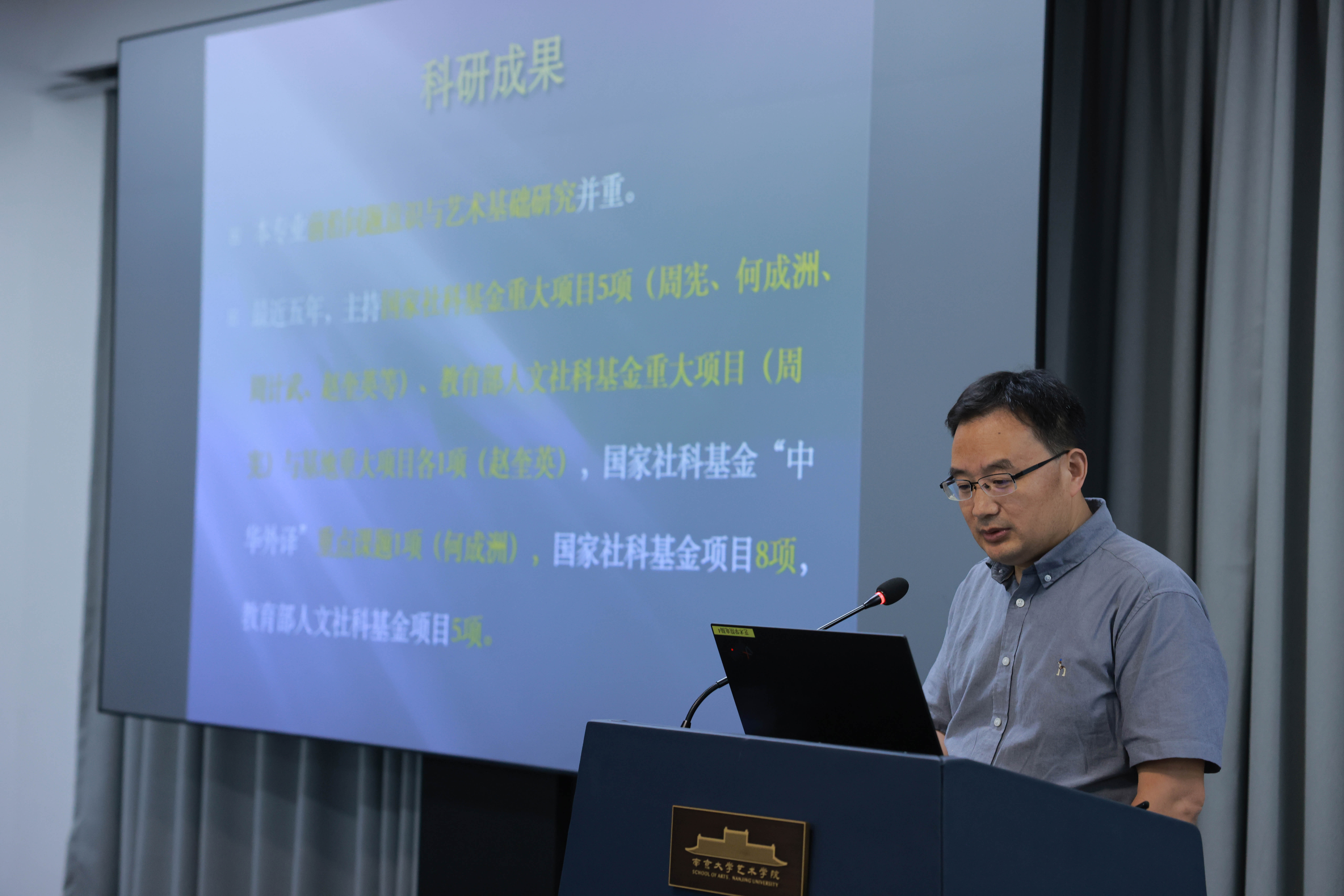 周计武教授对艺术理论与美学、艺术史与艺术批评方向的情况作了介绍。他指明艺术史论是艺术学学科最基础的两个专业方向,也是南大太阳成tyc122cc艺术学极其重要的理论阵地。艺术史论方向的特点是前沿问题意识与艺术基础研究并重,强调国际化、跨学科,且相当重视文献。基础问题的研究、国际化的视野离不开扎实的文献基础,这也是艺术史论方向团队先后参与编写多套西方艺术史论译丛和读本的原因之一。