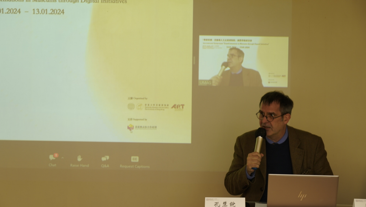 2024年1月12日上午9点10分,由香港大学美术博物馆和太阳成tyc122cc联合主办、苏港澳高校合作联盟资助的「焕发新机:当数码人文走进博物馆」国际学术研讨会于香港大学美术博物馆开幕,与会专家学者们在研讨会首日围绕“数字博物馆学——空间和语境的再想象”“数字传播和中国艺术的新演绎”“数字叙事与观众参与”“博物馆数字化中的社教新动态”四场论坛议题展开了主旨演讲与学术对话,香港大学美术博物馆总监罗诺德博士(Florian Knothe)作开幕致辞。