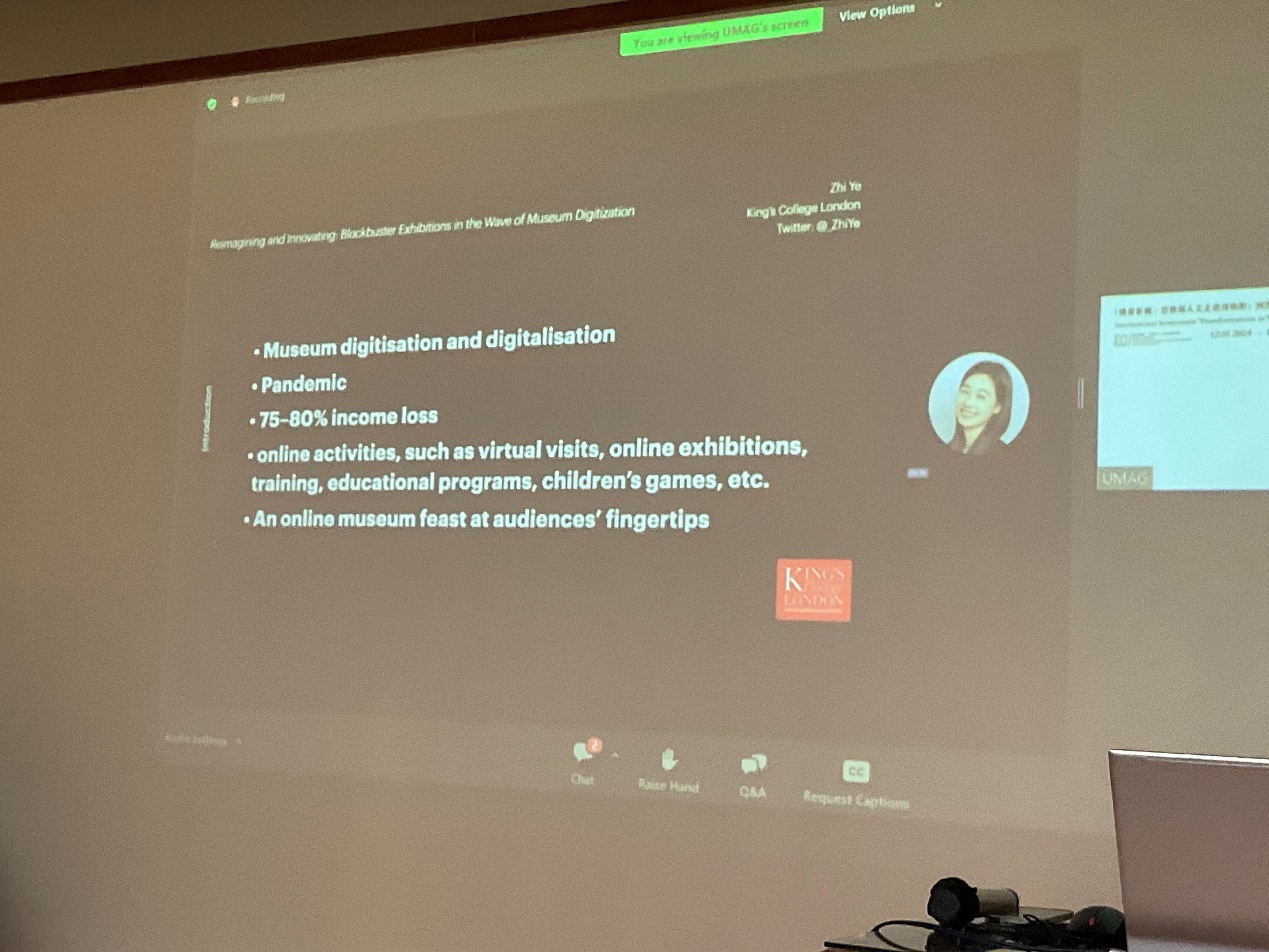 其后,来自英国伦敦国王公司的博士研究生叶知发表了题为Reimagining and Innovating: Blockbuster Exhibitions in the Wave of Museum Digitization的主旨演讲,旨在聚焦于大片展览在数字化趋势下的演变,评估了数字技术和在线互动内容对大片展览形式的影响,并指出虽然数字化开拓了博物馆展览展示和教育的新途径,但空间设计、实体展品和线下的观众互动等核心元素仍对观众的博物馆体验至关重要。