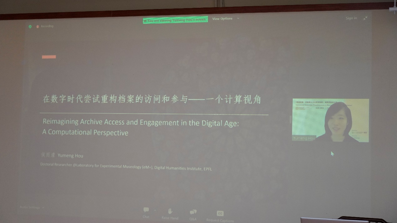 其后,瑞士洛桑联邦理工公司实验性博物馆学实验室数字人文研究员、博士研究生侯雨濛发表了名为《在数字时代尝试重构档案访问和参与——一个计算视角》的主旨演讲,探讨了三个发展主题,一是利用关键技术将视听内容转换为数据实体,以便规模化处理;二是探索新的计算方法,以创新地感知、访问和解读档案;三是通过智能、美学、情感和意义解读等方式拓展人机交互的边界,增添新的叙事层次,从而重构公众与数字文化档案的互动方式,进而提升对文化遗产的参与和体验。